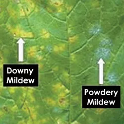 The terms oidium and mildew refer to a group of phytopathogenic fungi that cause diseases in plants and have similar symptoms. Oidium is also known as 'powdery mildew' and mildew as 'downy mildew'.